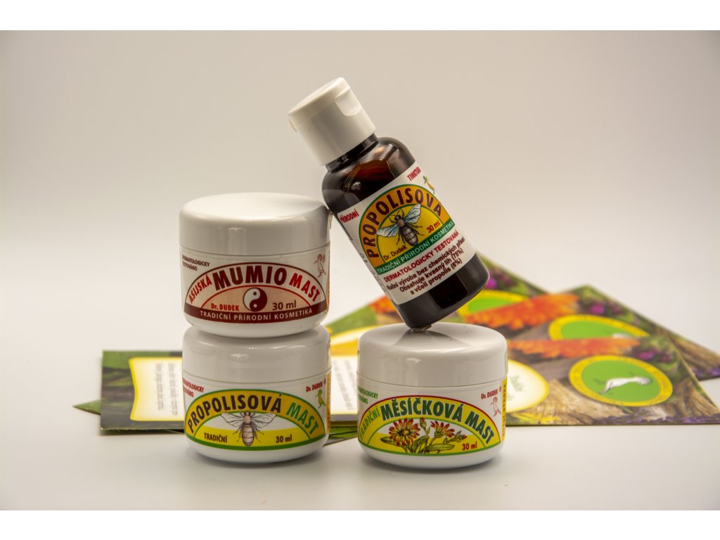 Včelí poklad propolis, bylinná sila nechtíka a minerálna energia ázijského múmia – spoločne prinášajú starostlivosť o pokožku a jej prirodzenú rovnováhu počas celého roka.