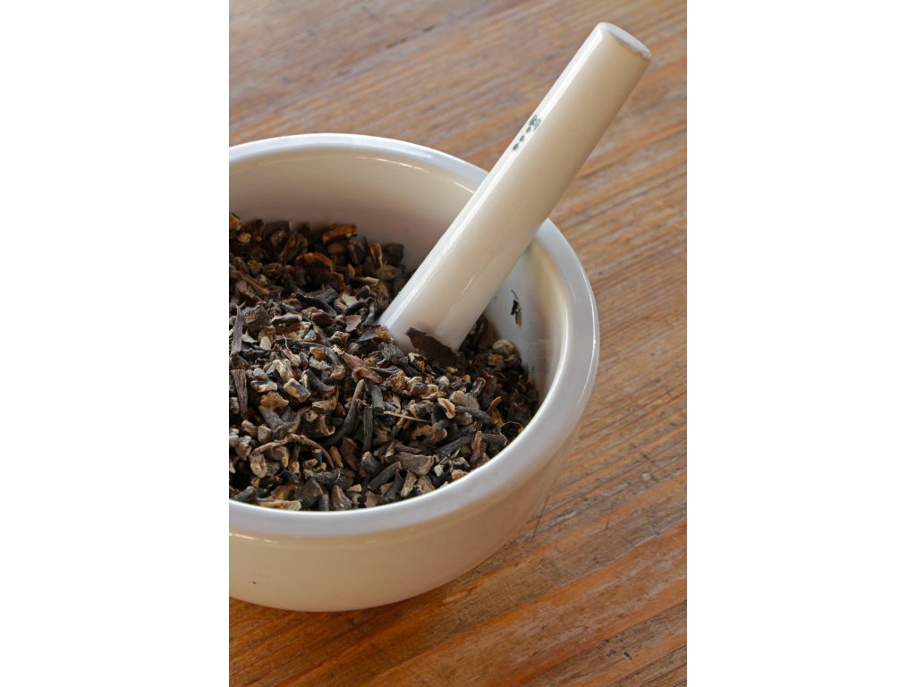 Koreň nadrobno nasekajte alebo pomelte na čo najmenšie kúsky, pridajte hrnček teplej vody s trochou oleja a všetko premiešajte na kašu. Túto kašu naneste na textíliu a prikladajte na postihnuté miesto.